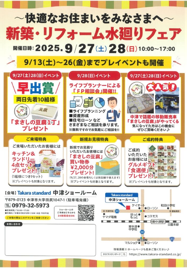 新築・リフォーム水廻りフェアを開催します、是非ご来場お待ちしております。